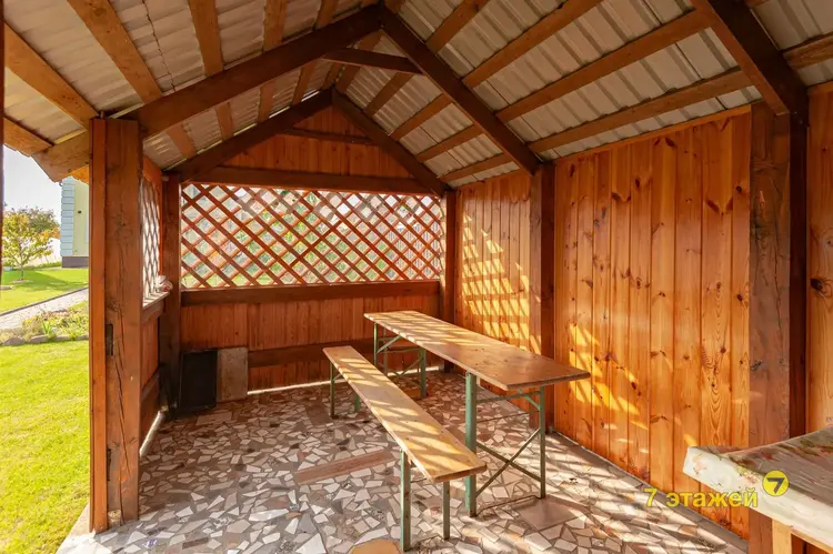 Есть хозяйственный домик для инвентаря, а рядом — лес и река Птичь для прогулок и отдыха на природе.