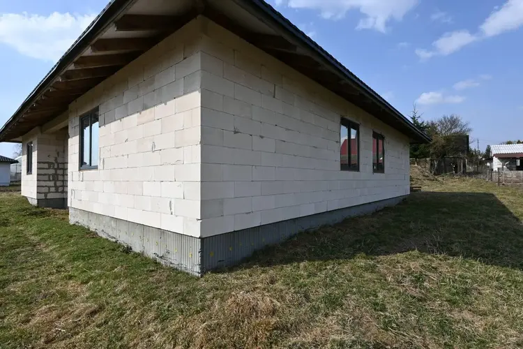 Армопояс выполнен по всем несущим стенам, с улицы утеплен газоблоком 100мм, также для единой поверхности фасада.