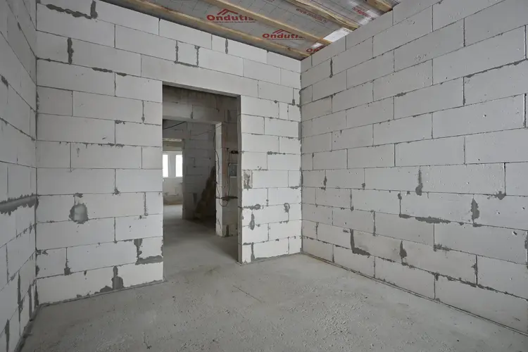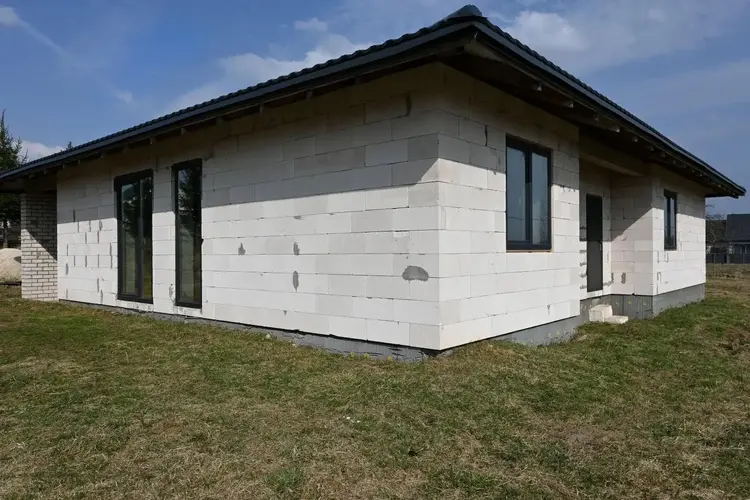 Внешние стены из газосиликатных блоков - 400мм, внутренние несущие стены - 300мм, внутренние межкомнатные стены 125мм. Под все внутренние стены был залит армированный фундамент шириной 200мм, глубиной 400мм.