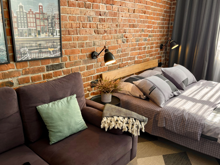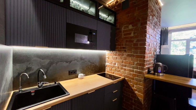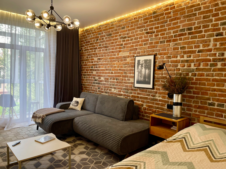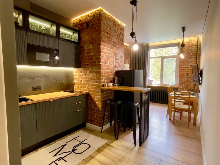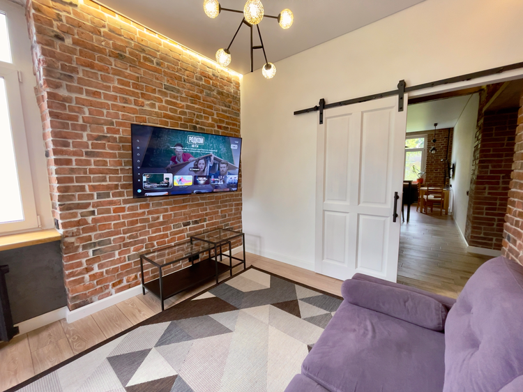 Стильная, современная, со всей необходимой бытовой техникой (посудомойка, микроволновка, стир.машина, фен, утюг,кофемашина). Три больших телевизора в каждой комнате (55 дюймов) с Яндекс подпиской. Шторы Блэк аут в каждой комнате. Скоростной интернет. Фильтр для воды. Дубовая мебель и подоконники. Чистое постельное и полотенца, средства гигиены, чай + кофе