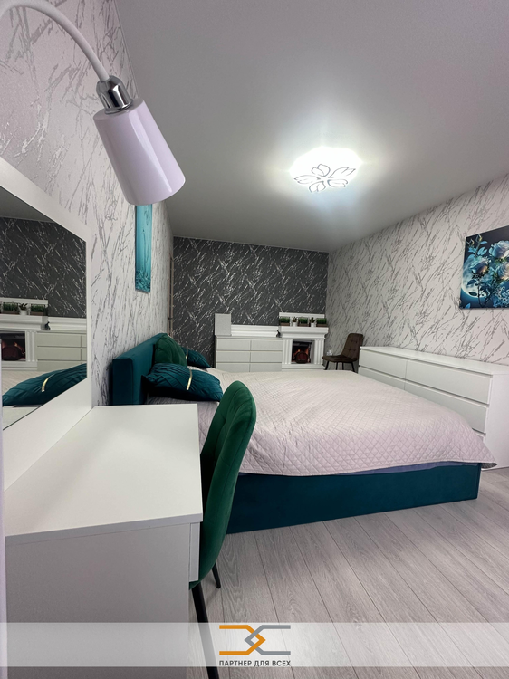 В спальне новая 2-х спальная кровать, камин, будуарный столик, кресло-качалка.