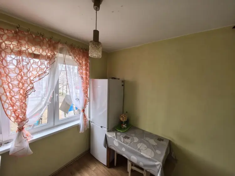 Очень светлая квартира с отличным расположением на третьем этаже пятиэтажного жилого дома. В квартире есть - 4 жилых комнаты, кухня, коридор, ванная, туалет и кладовая. Общая площадь квартиры 58,43 м.кв.