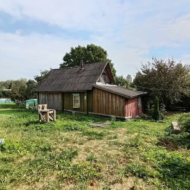 Деревянный дом не представляет архитектурного интереса, а является предметом продажи на земельном участке с оригинальным ландшафтом и вековым дубом, растут плодовые деревья. Территория больше, чем указана в документах (32 сотки) зафиксирована с трех сторон стационарными заборами соседей, четвертая сторона выходит на открытое поле через не проездную дорогу. Участок на отдалении от основного поселка, живописное и спокойное место. В доме вода, свет, стационарный телефон (Белтелеком), есть возможность подвести газ.