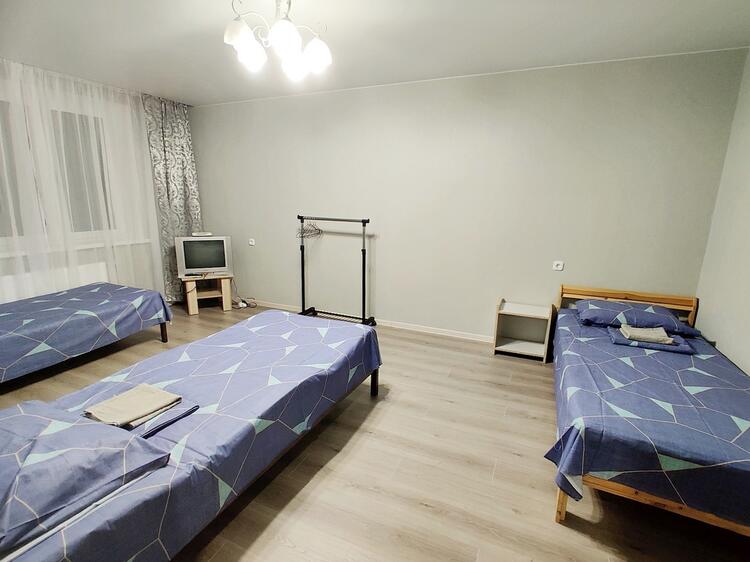 Заселение ОТ ТРЁХ СУТОК для командированных. В квартире есть все необходимое: 5 раздельных спальных мест, бытовая техника, посуда, Wi-Fi. Проводится уборка и смена постельного белья.