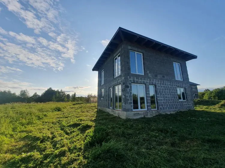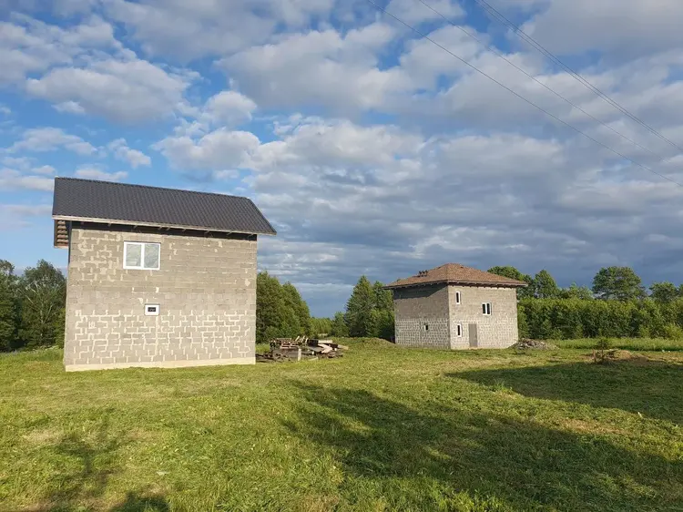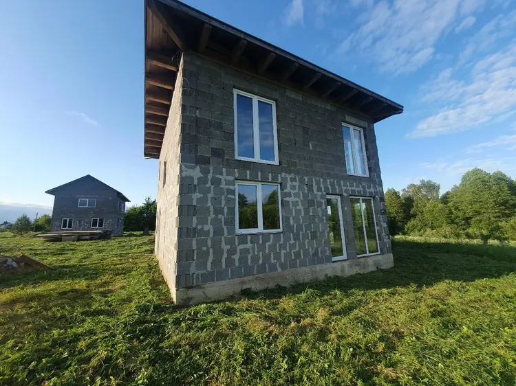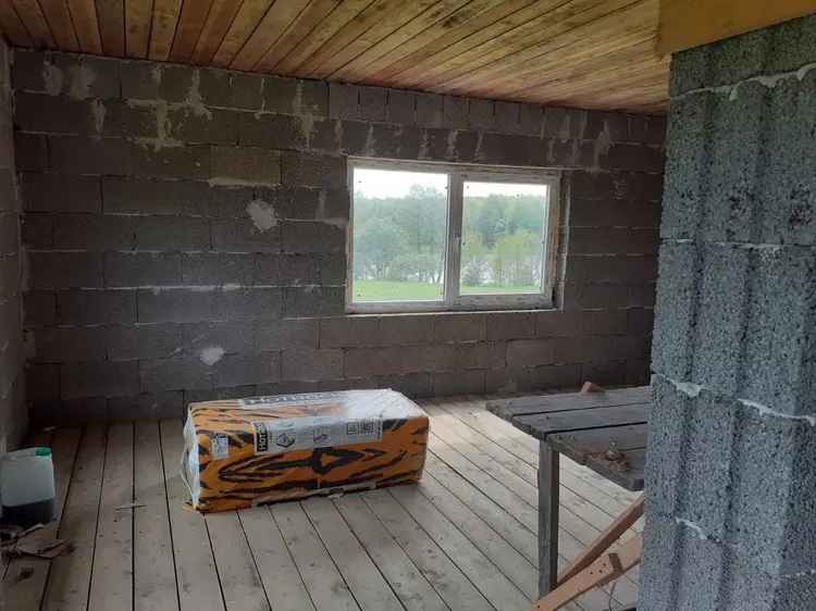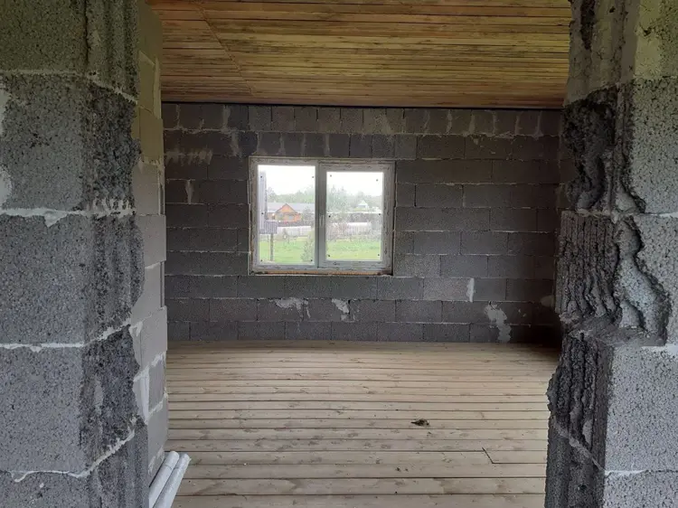 Сделана внутренняя черновая отделка полов и потолков.В наличии материал для наружной отделки и водосточной системы.