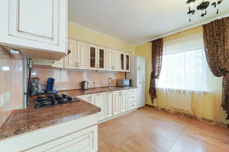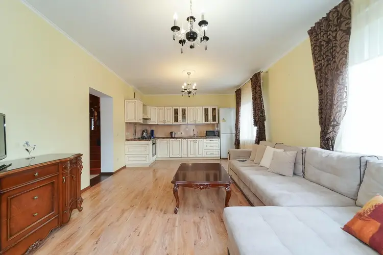 Второй этаж: на второй этаж ведет удобная деревянная лестница на котором размещены три раздельные спальни площадью 12.7 м2, 14.5 м2 и 15.2 м2. Также просторный совмещенный сан. узел площадью 8.5 м2 с большой ванной, унитазом и биде. Выход на чердак.