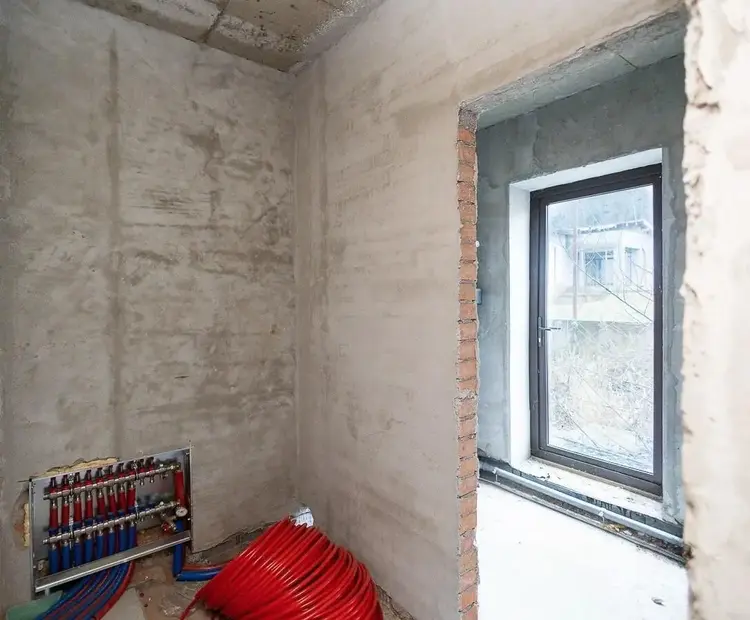 - Интерьер - черновая штукатурка и стяжка полов бетон