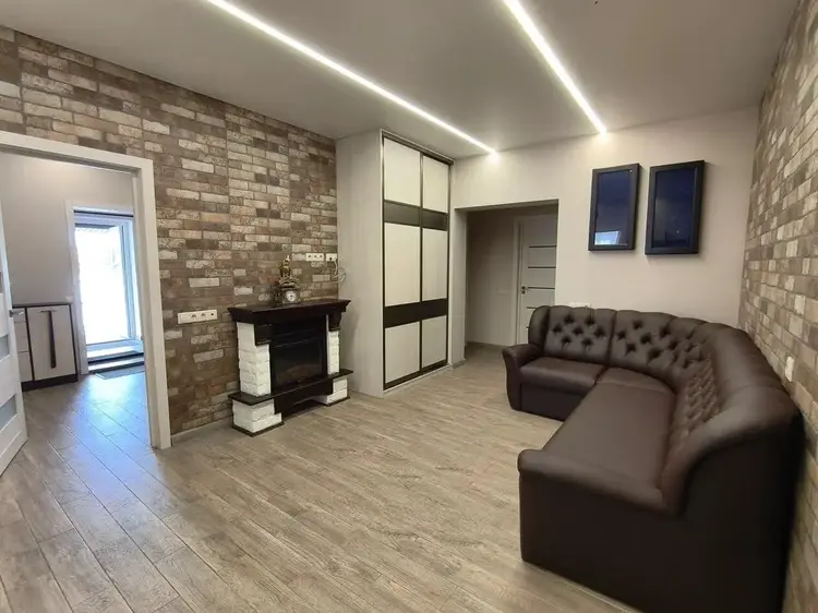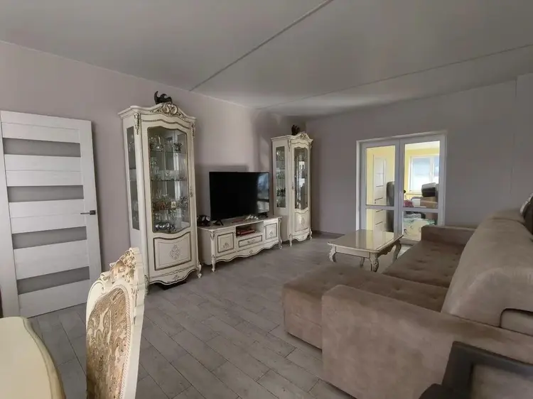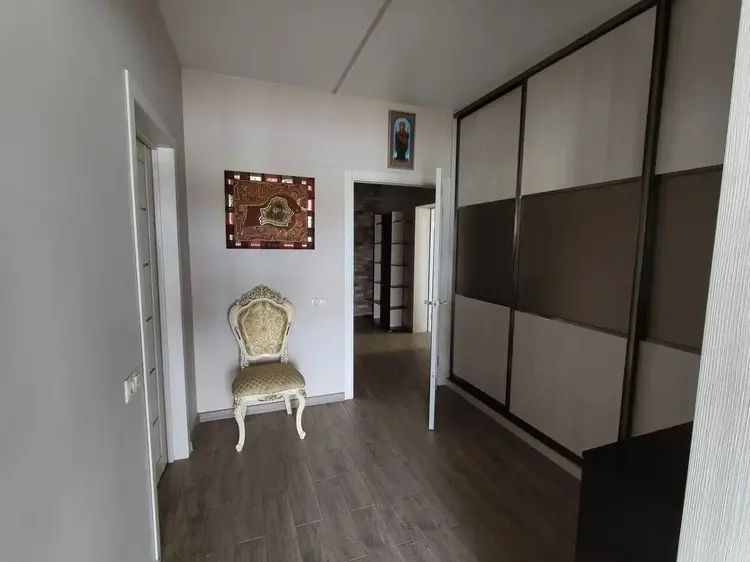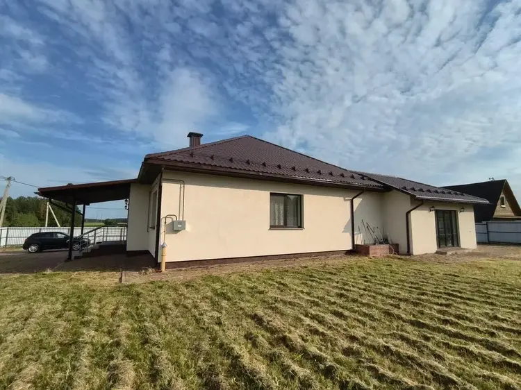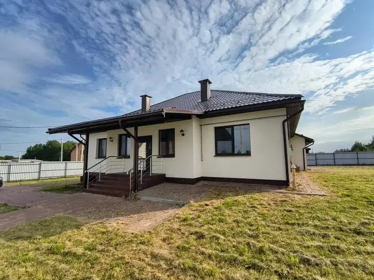 Дом построен функционально в одном уровне. Кухня-столовая-гостиная 41,2 кв.м, три спальни, просторный санузел 8,1кв.м, каминный зал 21,2 кв.м.
