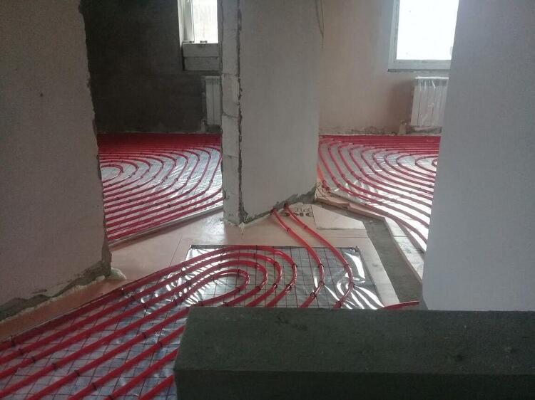 - отопление – тёплый водяной пол на двух этажах + радиаторы.