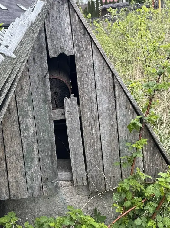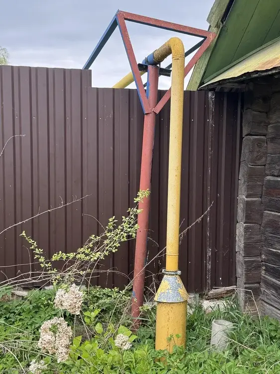Стены - бревно, крыша - шифер. Электричество, газ, колонка, колодец на участке. Отопление - печное.