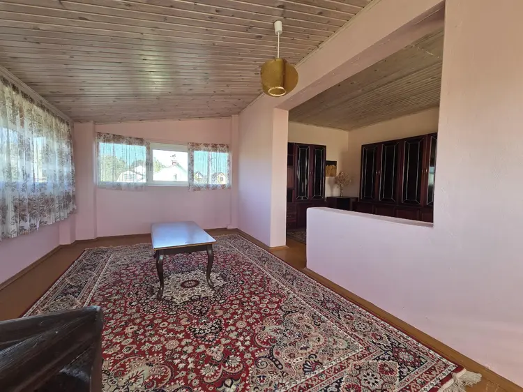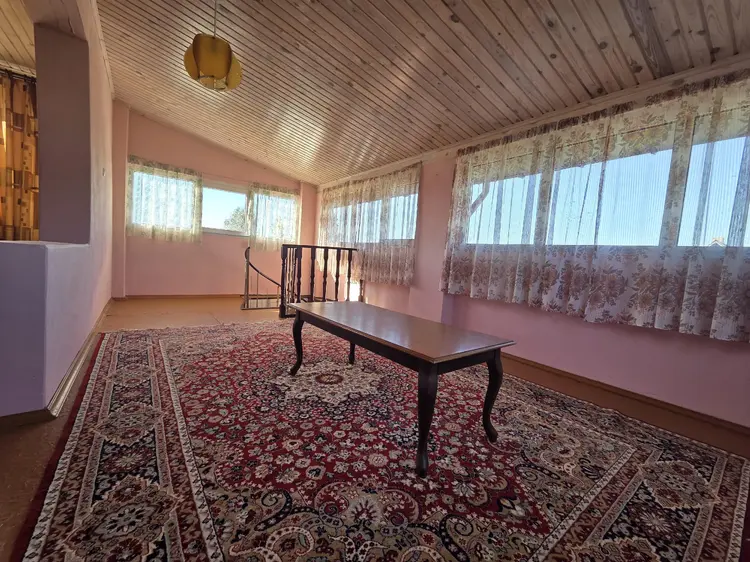 В доме - пять больших комнат, кухня. Общая площадь 136 кв.м.