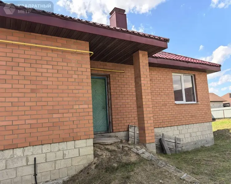 Фундамент - бетон, стены - г/с блок, утеплитель, облицованные красным кирпичом, крыша - металлочерепица, окна ПВХ.