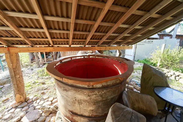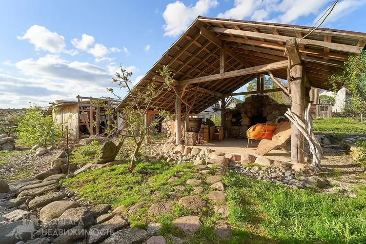 На участке выполнен ландшафтный дизайн с применением камня. Уложен «актикрот». Есть хозпостройка под хранение инвентаря и др. Крытая беседка с печью и подогреваемой купелью. Открытая площадка для отдыха и загорания, выложенная камнем для защиты от ветра.
