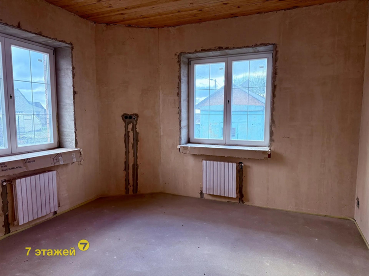 На первом этаже частично (в тамбуре, прихожей, санузле, ванной и частично на кухне) проложен водяной теплый пол. Стены оштукатурены под чистовую отделку, на полу стяжка под чистовые напольные покрытия. Перекрытие между первым и вторым этажом (мансардой), а также между мансардой и чердаком-черновое и черновая лестница. Окна: деревянные стеклопакеты со шпросами, а также деревянные английские мансардные окна. Помещения котельной и подвала облицованы керамической плиткой. В котельной разведены гребенки.