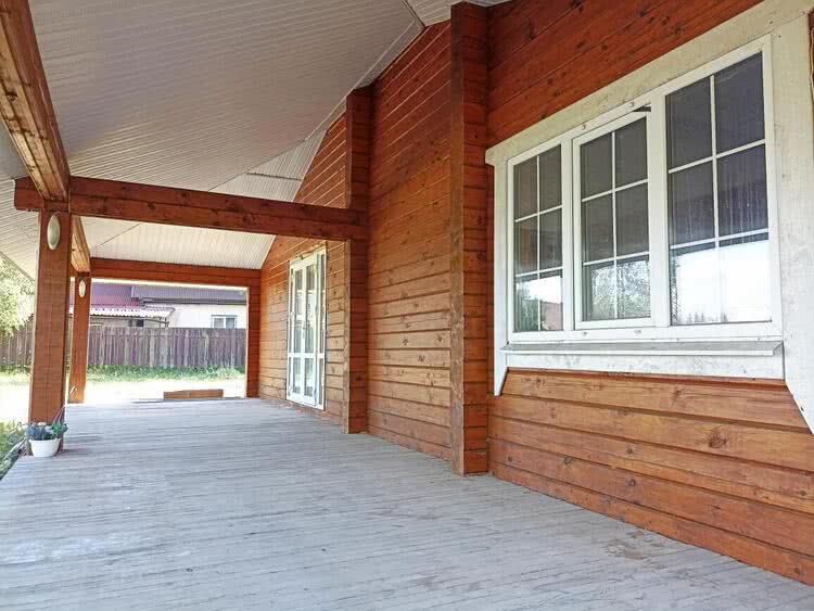 Двухэтажный дом из бруса общей площадью 200 м. кв., крыша - керамическая черепица, кровля утеплена, стеклопакеты тройного остекления (Германия). Снаружи дом обработан специальным составом , немецкого производства для длительной защиты (8 лет до необходимости новой покраски). Своя скважина, местная канализация с объемным септиком, отопление - электричество. Все коммуникации разведены, установлено оборудование для фильтрации и улучшения воды, по всей площади первого этажа оборудован теплый пол, дом готов к косметической отделке.