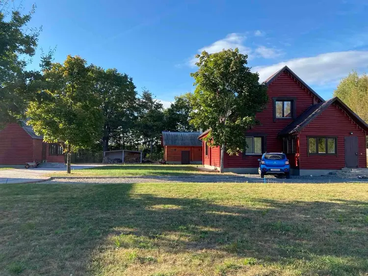 Все строения выполнены в едином архитектурном стиле. Жилой дом (основной) 2011 года постройки, современный и экологически чистый, со всеми коммуникациями, строился "для себя" надёжно и основательно, с соблюдением строительных норм и требований. Наружные стены утеплены и обшиты, внутренние бревенчатые стены открыты, частично обшиты натуральным деревом, поэтому в доме природный свежий запах и хорошая энергетика. Дом теплый, светлый и уютный. В основном доме: кровля - металлочерепица; окна премиум класса - деревянные и ламинированные ПВХ, полы деревянные и плитка. Общая площадь дома -119 м², жилая 63,2 м², кухня- 27 м², совмещенный санузел с душевой кабиной. Комфортная планировка, кухня - гостиная с камином, три комнаты изолированные (см. план), интерьер мягкий и сдержанный, мебель качественная и удобная; состояние – «заходи и живи»! Красивый панорамный вид на зеленую зону и на озеро. В гостевом доме: кухня с русской печью, лежанка, 3 спальни, санузел.