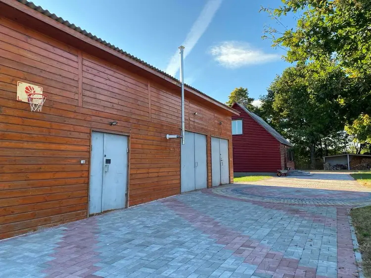 Хоз. постройки: просторная рубленная и душевная баня, в подвале гаража установлена система очистки воды (обезжелезивание); котельная мощностью 28 кВт, где установлен новый котел и насос системы BUDERUS Logomax U72-24K; сарай и навес. Въезд через ворота на электроприводе. Территория участка благоустроена и огорожена: разбиты дорожки и выложены площадки тротуарной плиткой, высажен молодой сад с фруктовыми сортовыми деревьями, большая часть участка отведена под газон. Круглогодичный удобный подъезд к дому по асфальтированной дороге. В деревне имеется платный оборудованный пляж.