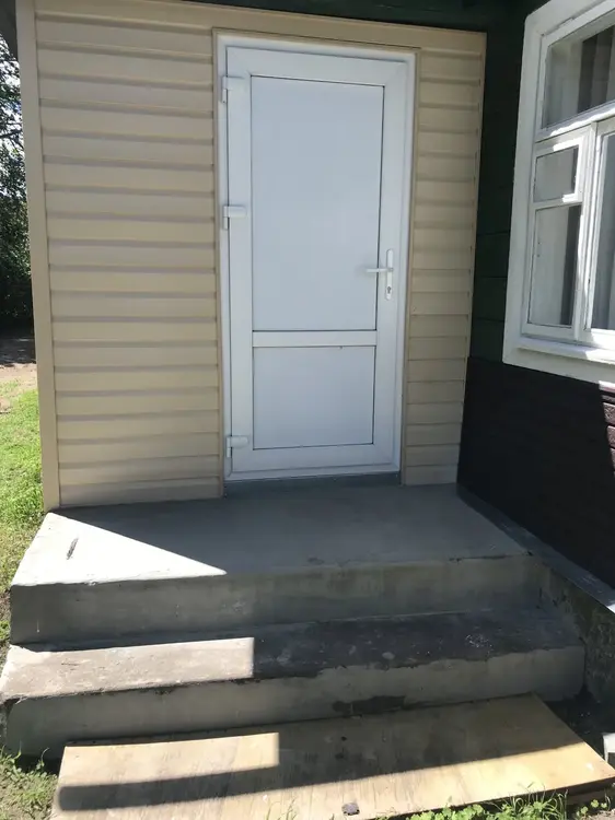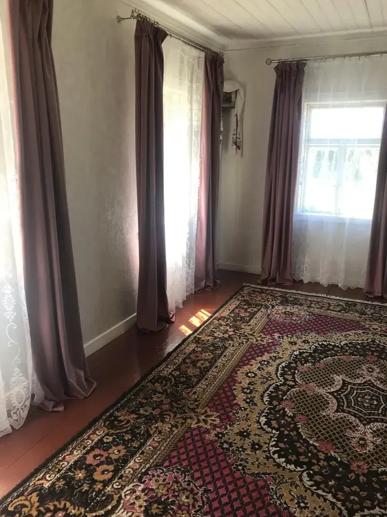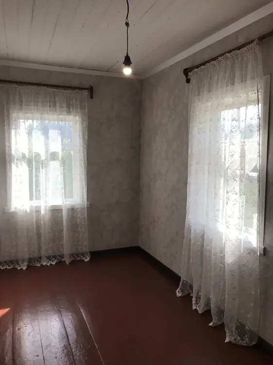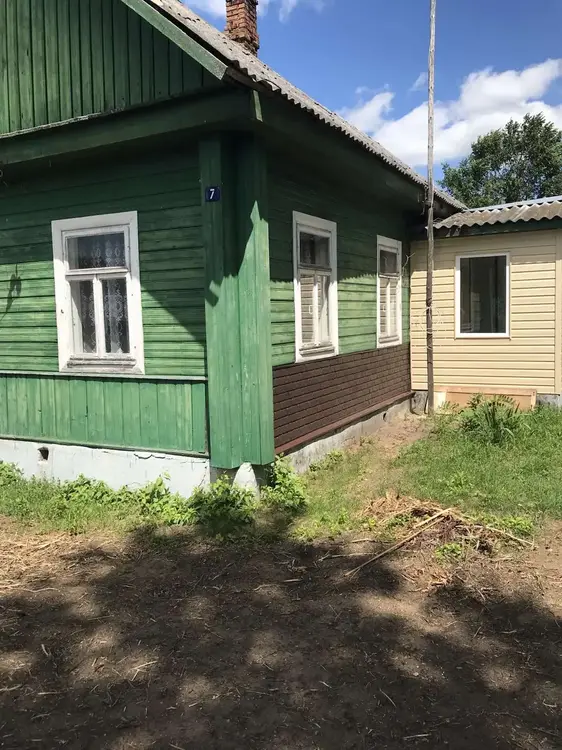 Дом построен в 1956 году, бревенчатый, внутри оштукатурен, высокие потолки, 59.1 кв.м. К нему примыкают бревенчатая пристройка на 30 кв. м, которая разделена на летнюю комнату с двумя окнами и кладовку, где при желании можно установить душ, поставить ванну и унитаз. В доме чисто и аккуратно. Есть веранда, хороший бетонный погреб. Участок 38 соток.