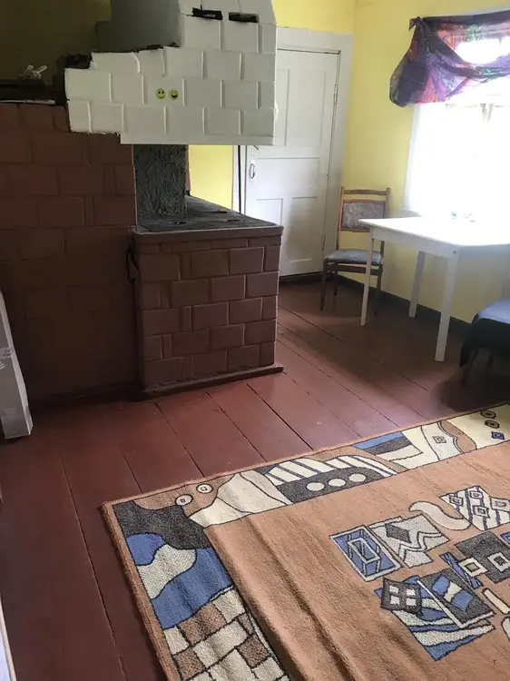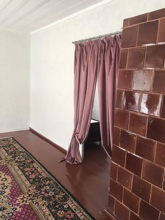 Из коммуникаций тут есть только электричество, отопление – печь, плита и печка, туалет – на улице, вода – из колодца. С одной стороны дома – хорошие соседи, с другой начинается лес. Деревня небольшая, всего сем домов, до Воложина, райцентра, – 9 км. Три раза в неделю приходит автолавка Евроопта. В километре от дома есть кафе, где вкусно кормят.