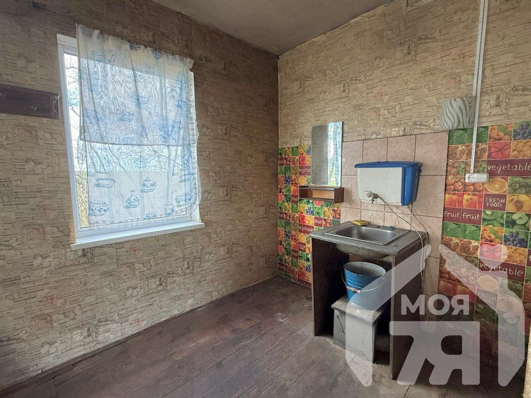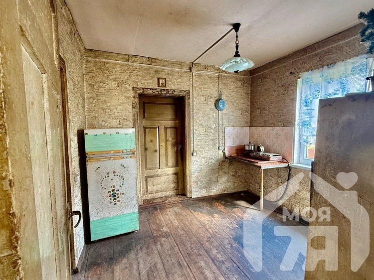 - Одноэтажный дом площадью 56,1 кв. м, жилая - 30,6 кв. м, кухня - 12,7 кв. м. Построен в 1970 году из бревна, снаружи оббит доской.