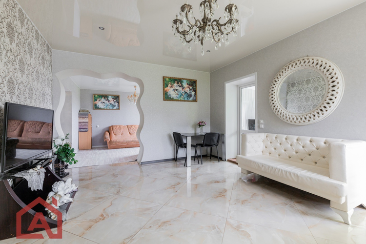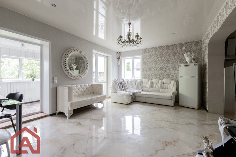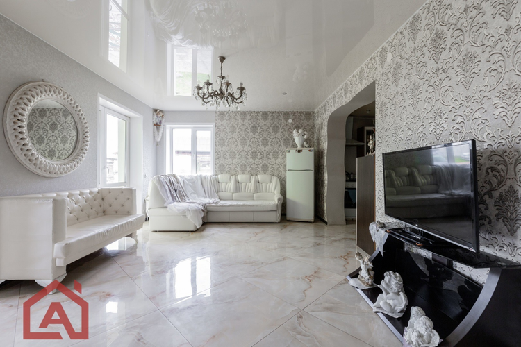 На участке стоит просторный дом 9,30м*8,82м 1999 года постройки. Дом теплый, уютный, просторный, светлый. В доме выполнен современный стильный ремонт из качественных материалов. Имеется 3 комнаты (две жилые комнаты, гостинная), кухня, корридор, санузел, подсобные помещения. Высота потолков- 2,85м. Фундамент – бетон. Перегородки-кирпичные. Стены-кирпичные. Окна трехкамерные ПВХ. Перекрытия деревянные. Внутри дома стены оклеены обоями. Крыша- шифер. Потолки-натяжные. Полы-дощатые, в гостинной- керамогранит, в жилых комнатах -ламинат. В стяжке разведена система теплого водяного пола. Выполнена новая разводка электрики. Можно обустроить второй этаж.