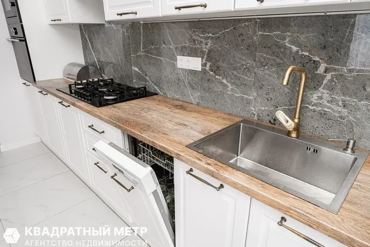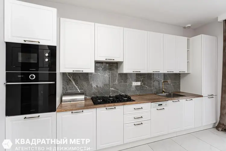- Бытовая техника: газовая плита, духовой шкаф Gorenie, посудомойка Miele, встроенный холодильник, СВЧ Maundfield (все остается).