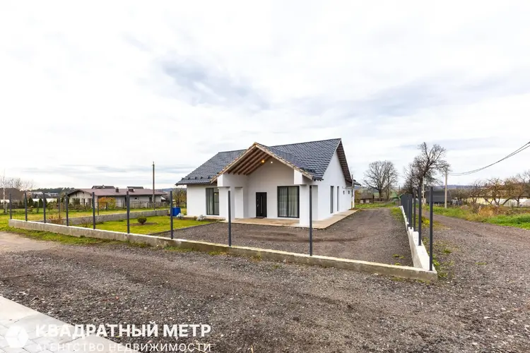 Дом состоит из очень светлой и просторной кухни-гостиной, двух больших жилых комнат, гардеробной, двух санузлов, топочной, гаража, большой гостевой парковкой перед домом. В доме находятся все необходимые коммуникации, включая электричество, газ, оптоволоконный интернет, центральное водоснабжение и местную канализацию.