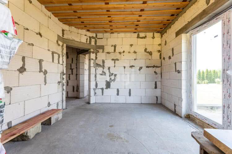 Продаётся недостроенный двухэтажный жилой дом в аг. Ракитница в 12-ти км от города Бреста. Дом возведён в 2023г. Площадь 81,3 кв.м., в доме три раздельные жилые комнаты, одна из которых имеет выход на терассу, кухня, санузел, гардеробная и котельная. Ленточный монолитный фундамент, стены - газосиликатный блок, фасад утеплен пенополистиролом и оштукатурен. Высота помещений 2,60 м, потолки утеплены минеральной ватой, на полу залита бетонная стяжка. Имеется второй мансардный этаж. Кровля – металлочерепица, окна ПВХ, металлическая входная дверь. К дому подведено газоснабжение, водоснабжение – скважина, трубы разведены по дому, централизованное электричество. Имеется архитектурный проект и возможность воплотить свои дизайн-проекты при дальнейшей внутренней отделке дома.
