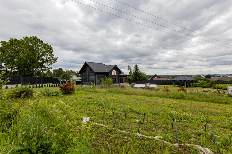 Сам участок просторный, с живописным панорамным видом. По периметру засажен елями и туями. Растет молодой сад современных плодовых деревьев, плодовые кусты, декоративные рокарии.