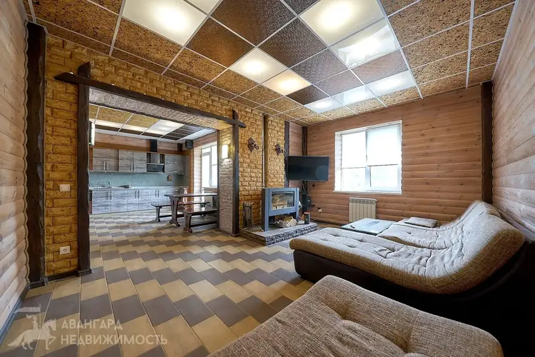Общая площадь по СНБ - 255.9 м2. Внешние стены кирпичные утеплены пенопластом 5 см и обшиты сайдингом. Внутренние стены – газосиликатные блоки, обшиты блок-хаусом, декоративный кирпич. Перекрытия – железобетонные. Крыша – ондулин. Потолки армстронг. Полы – плитка, ламинат. Все окна – ПВХ стеклопакеты. Межкомнатные двери – массив. Встроенная кухня оборудована электрической варочной поверхностью, вытяжкой, установлен фильтр для воды. Санузлы в плитке. Сантехника в рабочем состоянии.