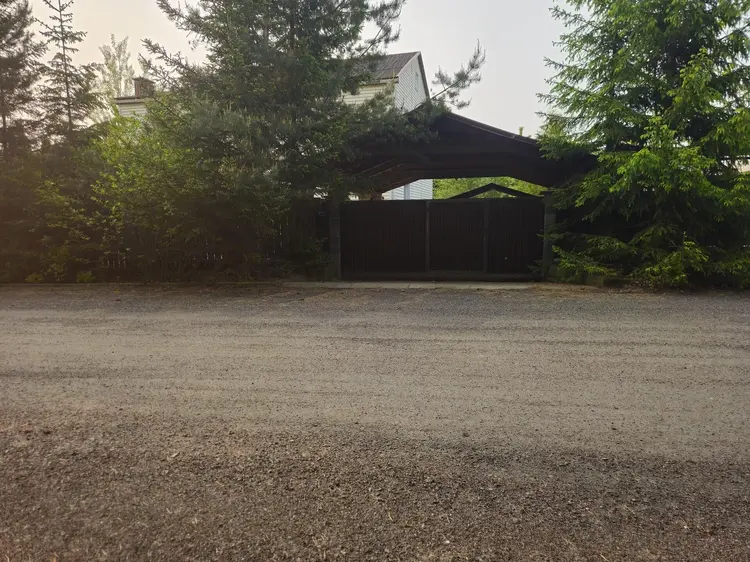 Площадь участка 12 соток в частной собственности. На участке расположены дом, баня с беседкой, навес. Участок огорожен забором, по границам участка множество насаждений, двое въездных ворот открываются с пульта (центральный для легкового авто, и боковой – для грузового в том числе).