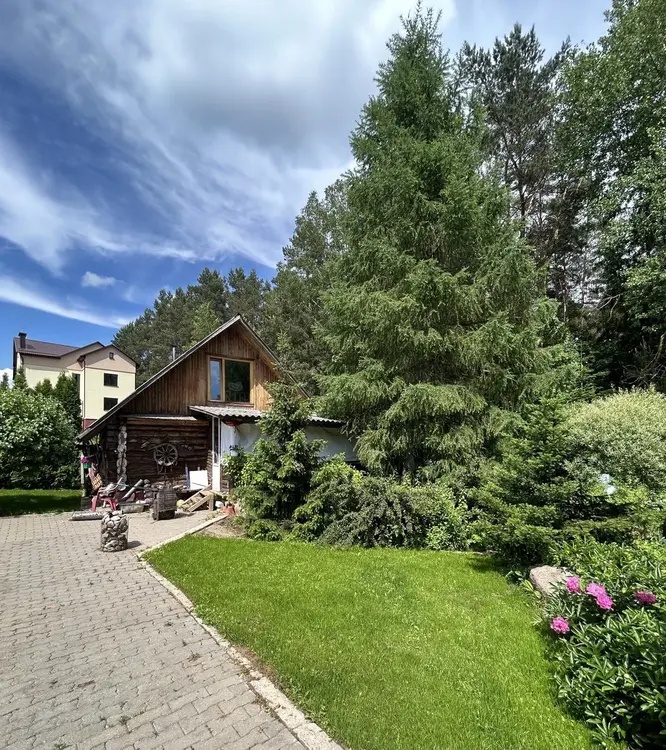 Участок 10 соток примыкает к лесу.Газон, много плодовых деревьев, кустарников. Имеется небольшая теплица из поликарбоната и зона для посадки овощей за домом. Также на участке возведена двухуровневая баня из деревянного сруба 6*6, на первом этаже есть русская печь.