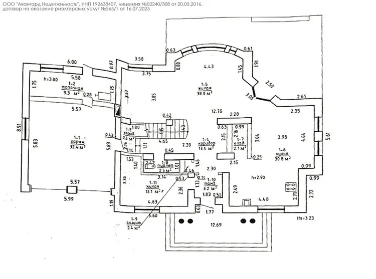 1 этаж: просторная кухня-столовая с выходом на террасу, гостиная с камином, жилая комната, санузел, клад. комната, гараж на 2 авто.