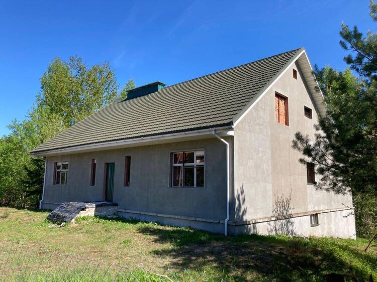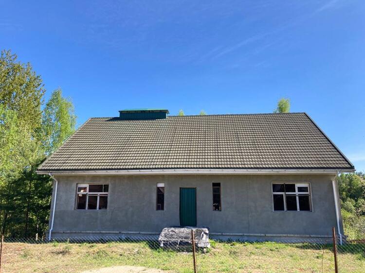 Материал крыши – бельгийская композитная черепица MetroBond. Дом оштукатурен. Все работы выполняла строительная компания. Имеется проект. Вода – собственная скважина (глубина 47м). Отопление – газовое паровое. Канализация – местная. Электричество заведено в дом. Сделана ливневая канализация. Телефон и интернет – оптоволокно (Белтелеком) подведено к дому.