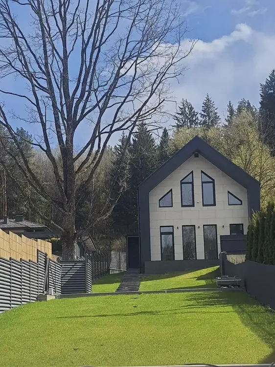 и импортная отделка, и зарядка для EV, и живой газон у крыльца. Огромная беседка с панорамным остеклением, хоз.помещение. Батут, детский городок.
