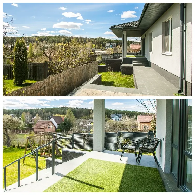Площадь дома: 120м² Участок: 16 соток (с газоном, кустарниками и плодовыми деревьями).