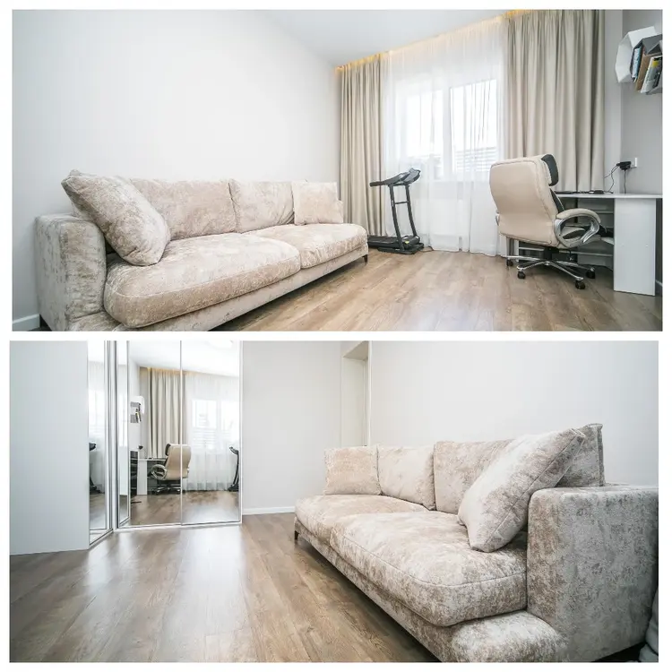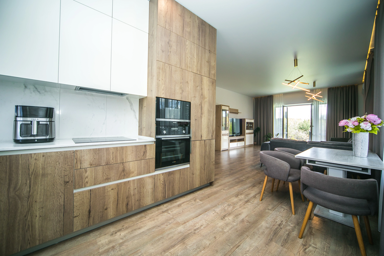 Кухня: Каменные столешницы, техника Siemens, кондиционер Electrolux инверторный. Межкомнатные двери из массива. Потолки — Feriсo, стены окрашены.