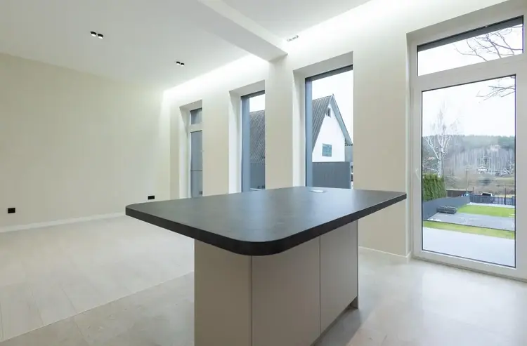 Коттедж введён в эксплуатацию в 2025 году, в нём никто не проживал. Кухня-гостиная с панорамным остеклением и видом на водоём — ключевая особенность объекта. Участок граничит с лесным массивом, что обеспечивает тишину и уединение.
