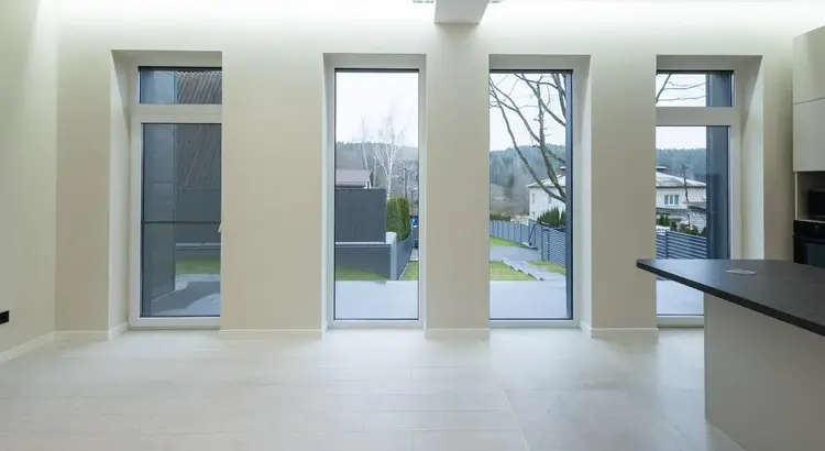 кухня-гостиная с панорамным остеклением и видом на водоём