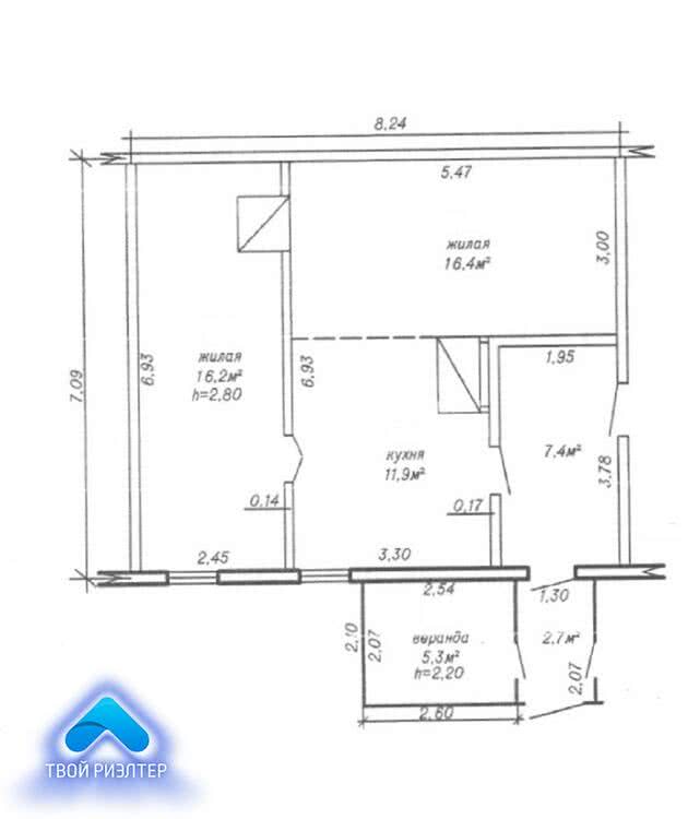 - квартира состоит из бревенчатой части 1948 г.п. и дощатой веранды;