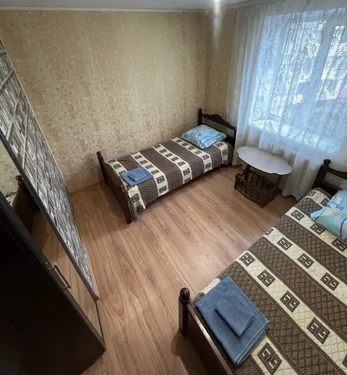 Полностью благоустроена, есть Wi-Fi, ТВ, холодильник, посуда и чистое постельное бельё.Рядом расположена парковка. В квартире пять спальных мест. Уборка и смена постельного белья.