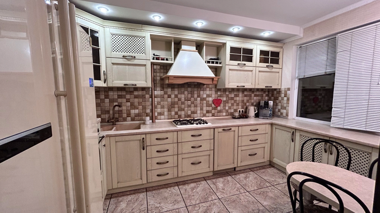 4 х комнатная квартира с узаконеной перепланировкой (3 спальные +столовая). Ремонт под ключ с встроенной бытовой техникой ( посудомоечная машина бош, варочная панель, духовка, вытяжка, холодильный шкаф) и мебелью, межкомнатные двери массив, обои моющие во всей квартире, окна стеклопакеты с рол-шторами. Кухня массив, 4 шкафа купе встроенные. Детская комната с мебелью. 3 балкона с теплыми полами. 2 кондиционера. В ванной комнате полы с подогревом. Подвальное помещение.