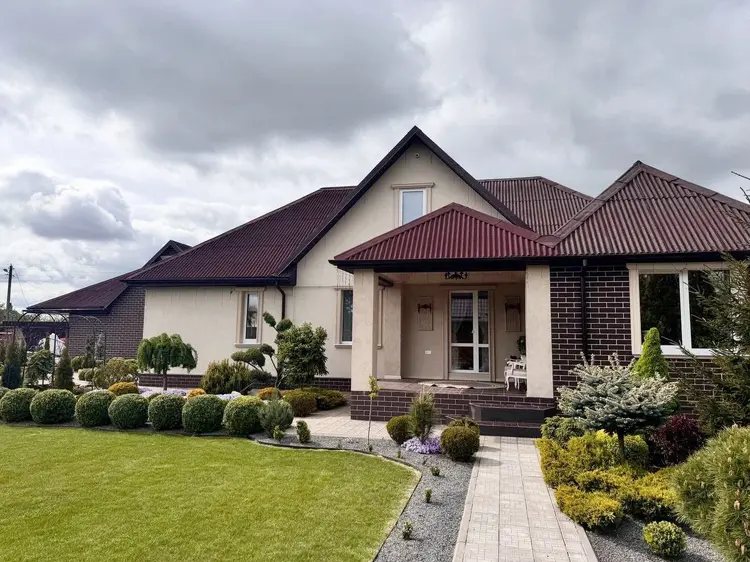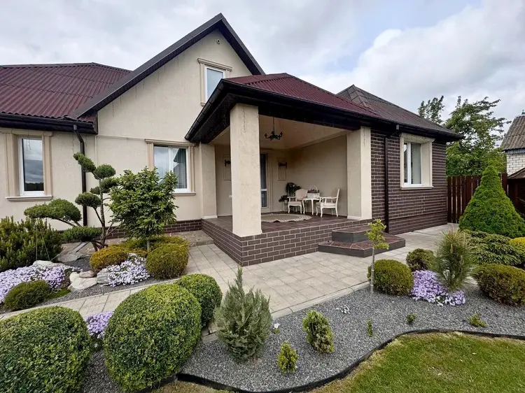 Дом построен на совесть: стены из газосиликатных блоков + кирпич с утеплением и декоративной отделкой, крыша из ондулина, современные стеклопакеты. Внутри — стильные натяжные потолки, качественный ламинат и плитка, на стенах декоративная штукатурка, межкомнатные двери из массива ольхи.
