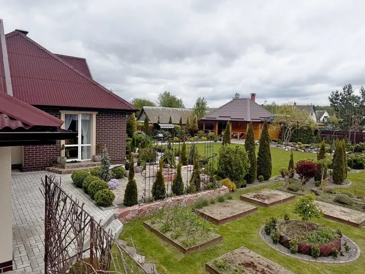 Участок в 15 соток, огорожен по периметру— это настоящая гордость! Территория благоустроена: ландшафтный дизайн с хвойными деревьями, плодовый сад и ухоженный мини-огород.