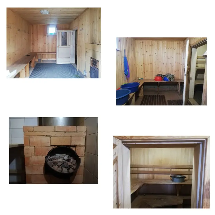На участке расположены хозяйственные постройки с гаражом на две машины, помещением для хранения продуктов и инвентаря. Также имеется баня с большой комнатой отдыха, помывочной и парилкой.