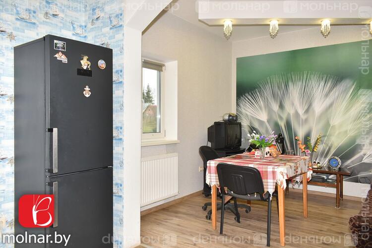 Кухня оборудована холодильником, отдельным морозильником Beko. кухонными ящиками, шкафчиками (все остается покупателю). Между кухней и столовой предусмотрено пространство под барную стойку. Имеется бойлер.