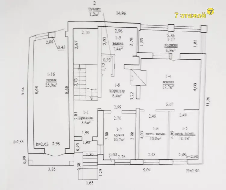 Первый этаж предусматривает: кухню 10.7 м2, большую ванную комнату 7,4м2 и санузел, где есть вся необходимая сантехника, а так же 3 жилые комнаты (19,7/10,0/10,1м2) и выход на просторную лоджию 6,9м2, коридор 8,4м2, прихожая 5,6м2. Мансардный этаж рассчитан на 3 жилые комнаты (15,75м2/15,75м2/42,8м2).