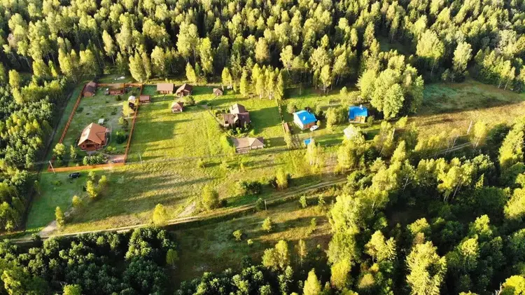 Весь комплекс в лесу (берёзы, сосны, ели). Живая изгородь из елей. Дикая природа, звери.