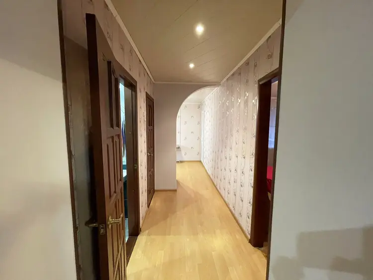 Продается трехкомнатная квартира в аг. Русино по ул. Школьная. Дом кирпичный, 1994 года постройки. Этаж 2/3. Площадь квартиры по СНБ – 67,9 кв.м, общая – 63,8 кв.м, жилая - 39,7 кв.м, кухня – 8,2 кв.м. Комнаты выходят на две стороны дома, из комнаты площадью 16,6 кв. м. и из кухни выход на лоджии. Санузел раздельный. Окна ПВХ, потолки: натяжной, гипсокартон и МДФ панели, на полу частично ламинат и дерево, двери массив. Установлены счетчики на газ, воду и электричество, есть подвал. Новому собственнику остается мебель и техника. Недалеко от квартиры есть облагороженный участок 2,5 сотки.