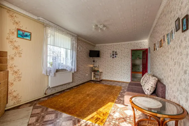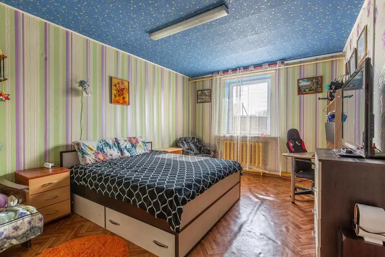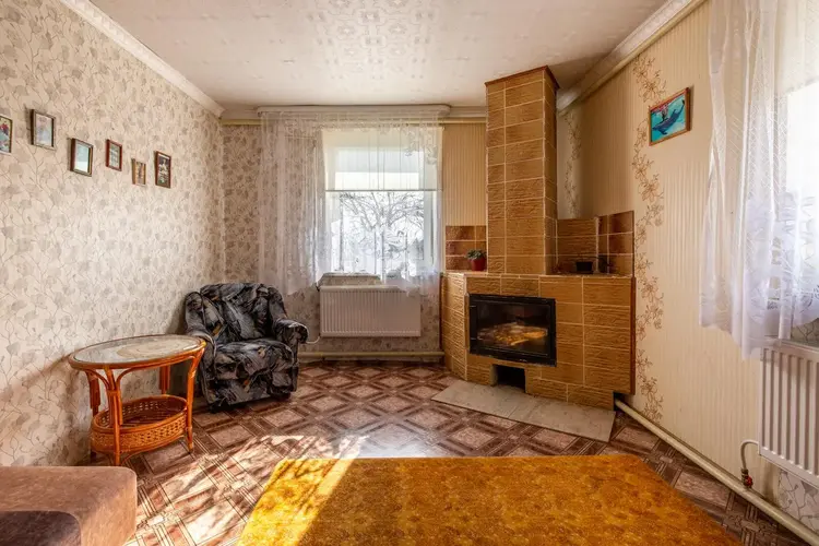 Дом состоит из 4х жилых комнат, большой кухни 14 метров, ванны 7,5 метров, санузла и подвала, для хранения запасов, с выходом из кухни. Дом очень теплый, окна ПВХ, металлическая входная дверь. Стены состоят из щитовых блоков, утепленных, обложены кирпичом, обшит сайдингом. Окна комнат выходят на солнечную сторону, в доме светло и уютно. В гостиной установлен чугунный камин, облицованный плиткой, в рабочем состоянии. Подходит для комфортной жизни большой и дружной семьи. Отопление газовым котлом (в прошлом году было установлено новое оборудование). Центральный водопровод и канализация. Низкие коммунальные платежи.